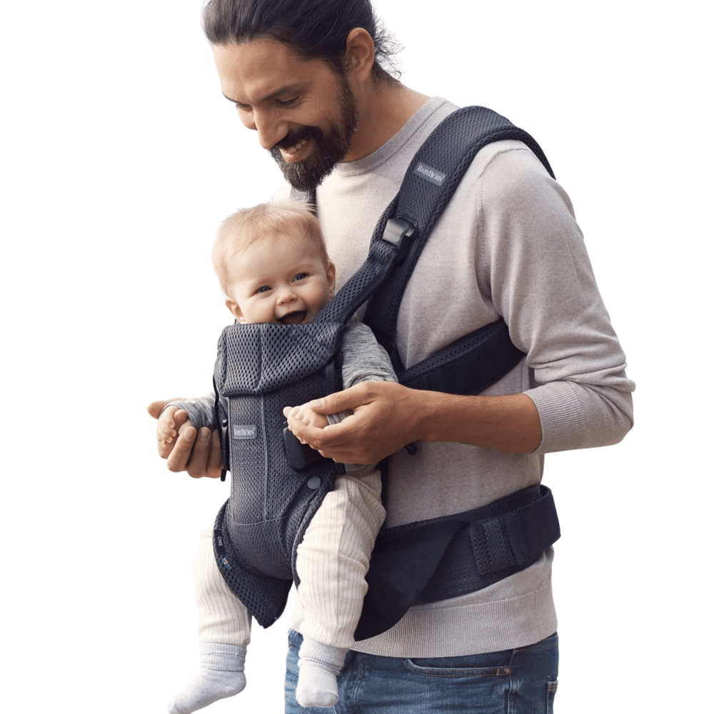 The Baby Bjorn Baby Carrier One Air is a great product for new parents. It can be easily assembled by any person and has two different height positions and provides ergonomic carrying with a wide leg position to prevent hip dysplasia.
