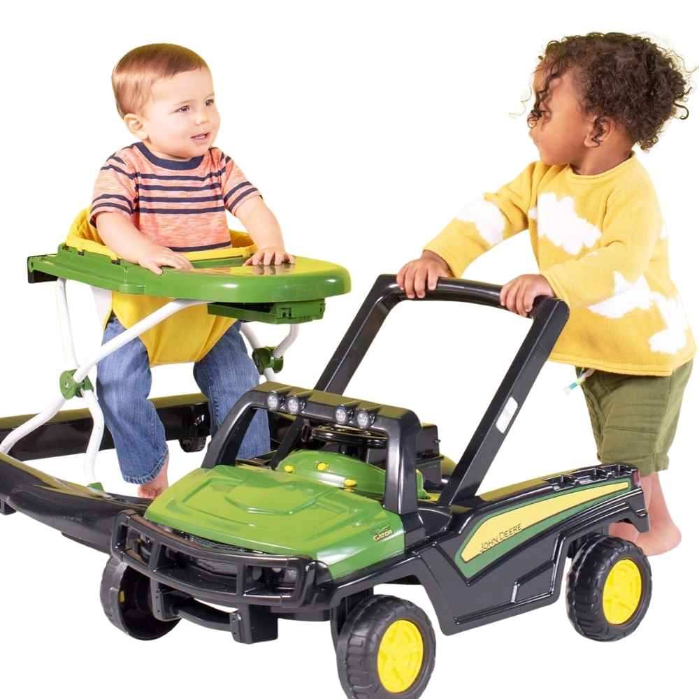 The Bright Starts John Deere Play 4-in-1 Walker is a great investment. It can be used as a stationary activity center or adjusted to three different height positions as your child grows.
