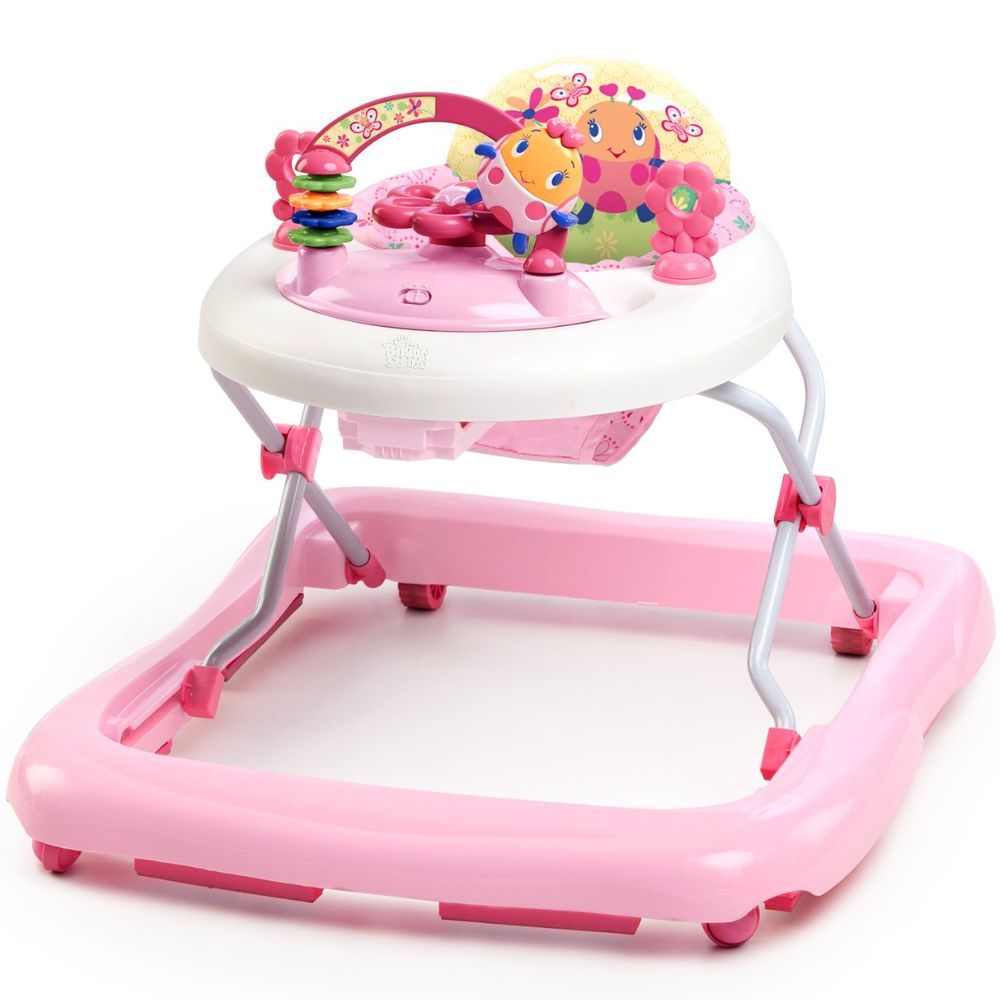 The walker can be used for floor play or on the go. The high seat back provides additional support and comfort. The Walk-A-Bout Walker also includes melodies and volume control. This is a great product for keeping your little one amused and entertained.