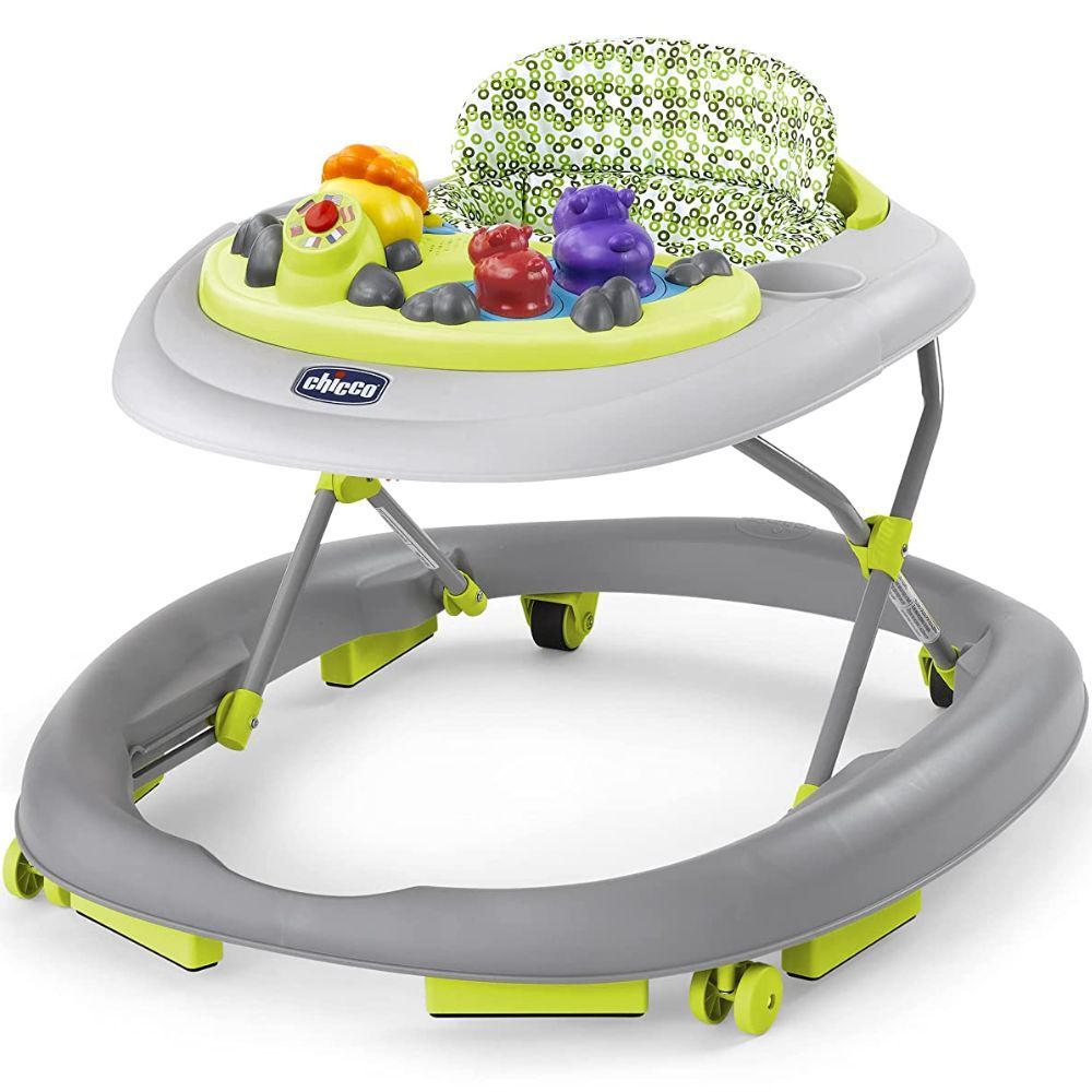 Chicco's Walky Talky Walker is a multilingual baby walker that entertains your little one with common phrases and words in five languages. The multi-lingual play tray can also be removed and used as a standalone toy, perfect for on-the-go fun. When it's time to put away the Walky Talky, it folds compactly for easy storage.