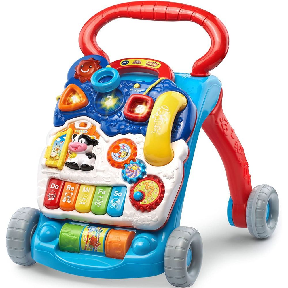 The VTech Sit-To-Stand Learning Walker is the ideal companion for helping your baby explore and learn. Its removable tray comes equipped with a variety of activities to provide both fun and education, as well as easy reattachment for on-the-go fun.