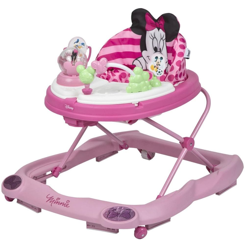 This walker folds quickly and compactly for storage and travel, making it perfect for taking on the go. It has also a machine-washable padded seat, so cleanup is a breeze. The padded seat is comfortable for little ones aged 0 to 48 months, and the colorful Disney designs will keep them entertained while they walk.