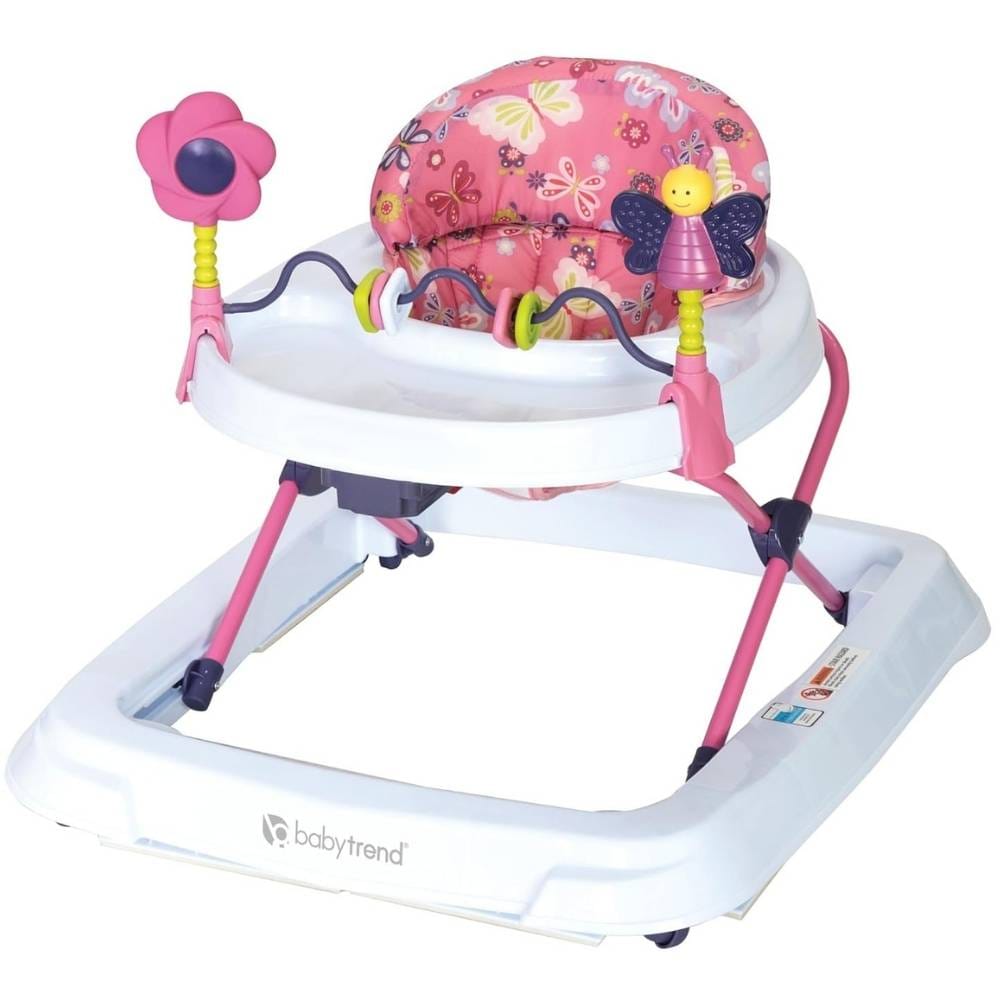 This is a great option for parents looking for a walker to help their child develop their walking skills. The walker has three adjustable height positions, so it can grow with your child, and two link loops for adding more fun toys. This walker is recommended for children six months and older who can sit up unassisted, and it can hold up to 26 pounds.