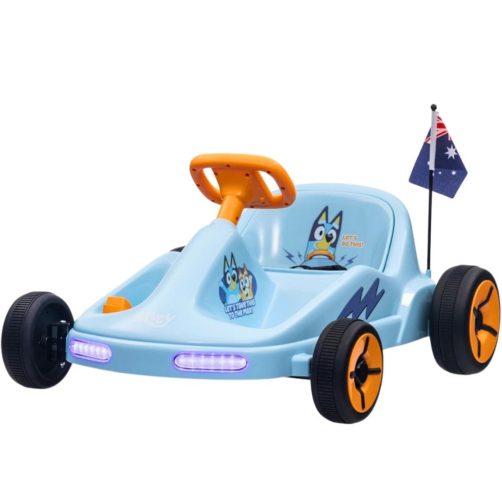 The Bluey Go Kart is a fantastic choice for young kids, especially if they adore Bluey. Its build is quite robust, thanks to the durable PVC and iron construction. This means it can withstand all the imaginative play your child can throw at it. Safety is a top priority with the secure seat belt and the manageable 12V speed, which keeps the kart in control even during those pretend races around the yard.
