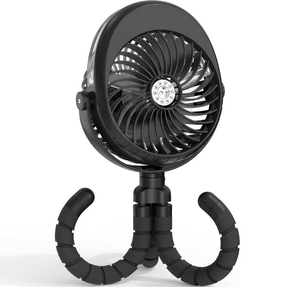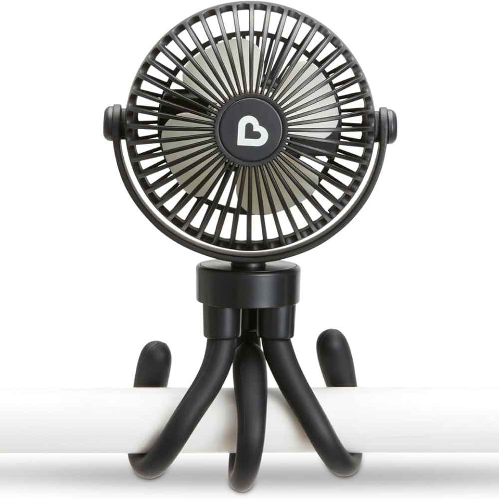If you hate constantly charging devices, the Momcozy Portable Stroller Fan is a total winner. It has a massive battery that can last up to 27 hours on a single charge! This is a lifesaver for long days at the park or camping trips. The tripod legs are grippy and flexible enough to wrap tightly around any stroller handle, car seat, or crib rail.